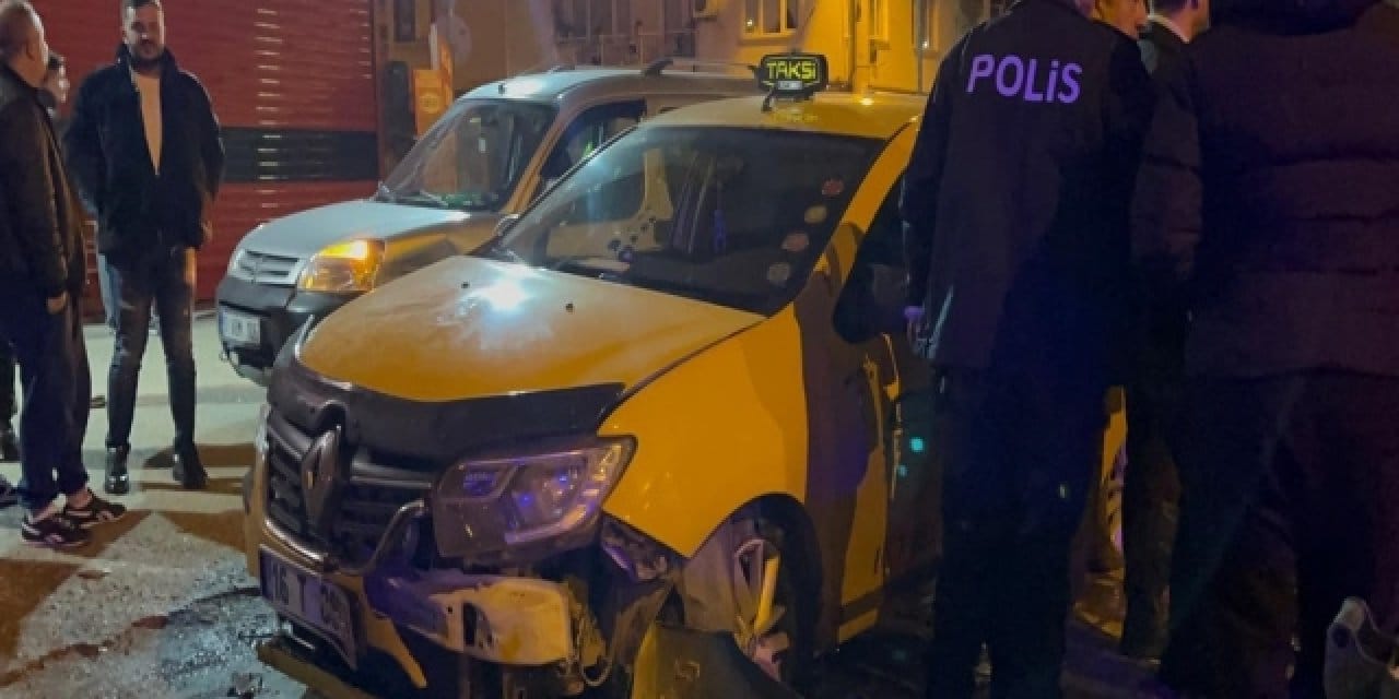 TAKSİ 3 ARACA ÇARPARAK REFÜJE ÇIKTI