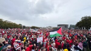 250 bin kişi, Hollanda hükümetinin İsrail’e desteğine karşı ‘Kırmızı Çizgi’ gösterisi düzenledi.