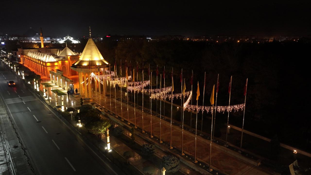 Konya Büyükşehir Belediyesi tarafından yapılan aydınlatmalar ile Şeb-i Arus Haftası’nda Konya ışıl ışıl oldu.