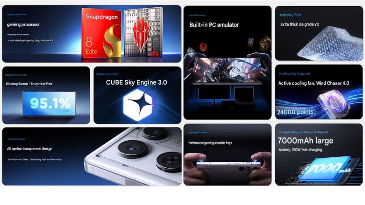 • Diğer: REDMAGIC OS 11, AI özellikleri, Wi-Fi 7, Bluetooth 5.4, stereo hoparlörler ve NFC.