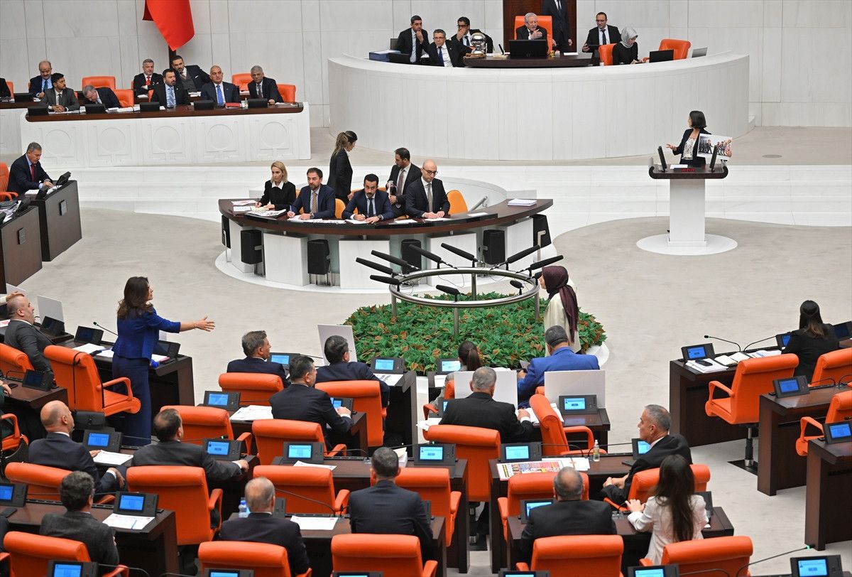 TBMM Genel Kurulu’nda Gençlik ve Spor Bakanlığı ile Kültür ve Turizm Bakanlığı’nın 2026 yılı bütçeleri görüşülürken, DEM Partili milletvekilleri kürsüye üzerinde karikatür bulunan bir döviz bıraktı. Dövizde yer alan LGBTİ+ simgesi, AK Parti grubunun tepkisini çekti.